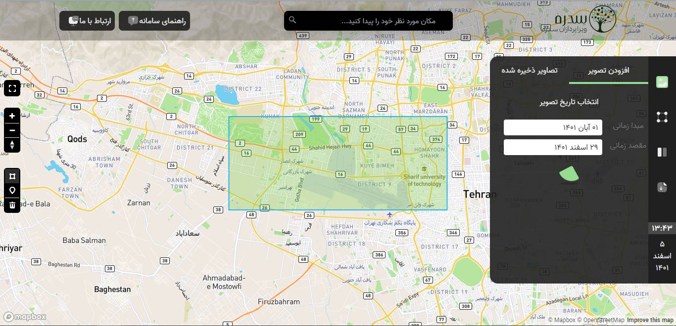 2- آرشیو و پردازش تصاویر ماهوارهای (ماهواره سدره) با امکان تحلیل دادهها متناسب با درخواست کاربران.